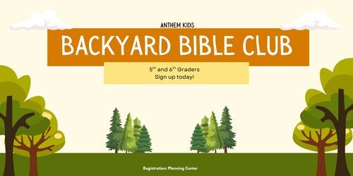 Moving towards our goal of small groups, we are happy to introduce...Backyard Bible Clubs! We invite all incoming 5th and 6th graders to join us once a month for some small group fun in backyards. Our heart is to see the kids thrive in a smaller group setting, friendships deepen and grow, and to promote parent involvement in our kids' spiritual discipleship.