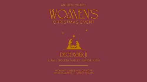 Our first Anthem tradition is our Christmas Eve Eve outreach on December 23rd. This year, we'll be at Dos Pueblos Theater to celebrate the birth of Jesus. We'll be going out into neighborhoods on Sunday, December 21st in the afternoon to pass out flyers so that our community can hear of Jesus' love.